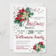 Um convite de Natal Festivo para Brunch com flores florais de Poinsettia, brancas e vermelhas, e luzes de cordas correspondentes. Uma design com um texto vermelho e verde convidando seus convidados a se juntar a você para uma festa de almoço. O convite perfeito para a festa de Natal glamourosa. Fácil de personalizar com os detalhes do seu próprio partido.