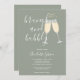 Um chá de panela elegante e elegante, com óculos de champanhe e nome de script de assinatura, este convite para na moda pode ser personalizado com suas informações em letras quentes em um fundo verde de sábio. Projetado por Thisnotme©