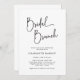 Simples Script Bridal Brunch. Este moderno convite para brunch, escrito com letra minimalista, é perfeito para casais que querem fazer uma declaração ao estilo contemporâneo. A elegante caligrafia combinada com a paleta de cores preto e branco criará um convite para eternos que seus convidados não esquecerão. Faça uma declaração ousada com este design único e na moda!