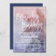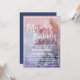 Este brunch tropical sunset e cartão de convite à espuma é perfeito para um destino ou chá de panela de praia. O design apresenta um fabuloso pôr do sol roxo e azul-aquarela, cor rosa, com uma palmeira a soprar na brisa.
