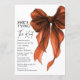 Celebrate her upcoming “I do” with effortless elegance using these Brunch With The Bride – She’s Tying The Knot Bow Invitations. Designed with a romantic coquette-inspired watercolor bow and an elegant rust orange and white theme, this invitation sets the perfect tone for a chic, modern bridal brunch.