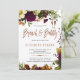 Um moderno convite chic de outono, brunch e bubble, com flores de burgundy e laranja enferrujadas, folhagem seca, folhas verdes e um roteiro tipográfico tipográfico clássico de escrita manual. ++++++++++ É fácil personalizá-lo com seus detalhes! ++++++++ Adequado para as tendências do champanhe floral brunch chás de panela temáticos, outono de jardim ao ar livre ou fim de festas elegantes de noivas no quintal de verão.