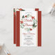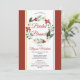 Basta os detalhes de seu Bridal Brunch para completar este bonito design verde-mudo e vermelho-floral e bagas sobre um painel branco com faixas de borda de ouro mudas em um fundo vermelho-sujo. A parte traseira apresenta um buquê floral coordenado em cantos opostos (superior esquerdo e inferior direito). Um estilo simples e moderno que certamente impressionará os seus destinatários.