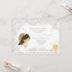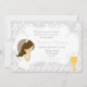Este convite da Primeira Comunhão Damask apresenta uma adorável menina de cabelo marrom em um primeiro vestido de comunhão sagrado.