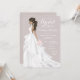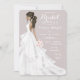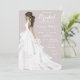 Chá de panela apresenta uma noiva em um vestido branco de casamento que você pode personalizar cabelo, vestir e tom de pele para parecer a noiva. O verso do convite apresenta um padrão floral de ouro rosa. As cores do convite podem ser personalizadas. Entre em contato comigo se precisar de ajuda para mudar de cores ou personalizar noiva.