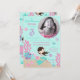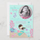 Pequena carta de convite para o terceiro aniversário da sereia com criaturas submarinas.