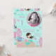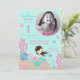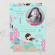 Pequena carta de convite de aniversário da sereia com criaturas submarinas.