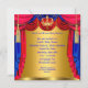 Chá de fraldas Príncipe Real, Coroa Vermelha Azul e Dourado, Urso de Brinquedo Amarelo e Trono de Cadeira Vermelha. Cute Brunette Baby Boy. Chá de fraldas elegante, Casal Chá de fraldas e Cortinas Vermelhas e Azuis Convidam Tasilelas. Chá de fraldas Vintage.
