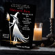 Você é convidado para uma noite de encantamento e elegância estranha! Junte-se a nós para uma festa de bruxaria no Halloween onde os feitiços serão lançados e os espíritos serão levantados. Faça seu traje mais místico e prepare-se para uma noite de diversão e surpresas assombrosas. O convite apresenta uma silhueta impressionante de uma bruxa, elegantemente envenenada com sua vassoura, contra um fundo negro profundo. A bruxa, cortada num vestido que flui e que desaparece em uma névoa fantasmagórica, exude uma aura de mistério e graça. O chapéu dela, inclinado assim, adiciona um toque de charme brutal clássico. A design é minimalista, mas cativante, usando uma paleta monocromática com pistas de ouro que pegam o olho e evocam um senso de altura mágica. O humor geral é sofisticado e assombroso, definindo perfeitamente o tom para uma celebração inesquecível do Dia das Bruxas. Personalize o texto com seus detalhes. Certifique-se de alterar o nome, a data e o endereço. Você pode baixar a placa para seu dispositivo móvel ou computador. Eu desenhei o cartão com a ajuda da tecnologia ai.