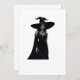Este trabalho de arte digital cativante retrata uma bruxa poderosa num vestido preto elegante com olhos vermelhos brilhantes e um chapéu elegante de bruxa.