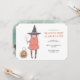 convite para a festa do Dia das Bruxas de criança com bruxa e abóbora. Você pode fazer o pedido como download, versão impressa ou ambos. Ilustração pintada.