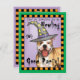 Convide todos seus amigos a um bom partido do urro este Dia das Bruxas com os convites que mostram que um pitbull Terrier americano bonito que veste um chapéu da bruxa decorou com uma aranha bonito. Tenha um partido feliz do Uivo-oween!