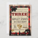 Convites Buffalo Check Flannel Little Bear aniversário de 3