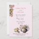 Belo Dia de as mães de aquarela Chá convite com estilo vitoriano encantador Teapot e Teacup cheios de flores e bonito Hummingbird sentado no galho de uma cerejeira em floração. Personalize sua mãe ou avó.
