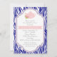 Bule de chá e zebra impressos cor-de-rosa, chá de panela azul-marinho com um bule de chá cor-de-rosa com um toque floral branco, flores de peônia, um banner cor-de-rosa, um quadro e um padrão de impressão azul-marinho, zebra branca-animal. Este na moda é um modelo perfeito para um primavera, verão ou casamento outono/outono. Texto em cinza e branco.