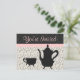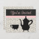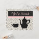 Bule de chá e xícara lindos em um bonito fundo de rolhas em preto e creme. Você pode personalizá-lo com seu próprio texto. Perfeito para uma festa de chá.