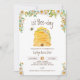 Este convite para Bumble Bee Birthday mostra abelhas aquáticas e uma colmeia amarela adornada com belas margaridas brancas. Facilmente personalizável com seus detalhes e idade da criança. Para editar ainda mais, use a Ferramenta Design para alterar a fonte, o tamanho da fonte ou a cor.