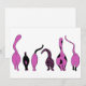 Um desenho de seis gatos mostrando seus bumbuns roxos bonitos.