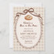 Celebrate the mom to be with this Bun in the Oven Gingham Sourdough Baby Shower Invitation. Designed with a watercolor sourdough loaf, a chocolate brown vintage bow frame, and a soft beige gingham background, this sweet bakery inspired theme adds cozy charm to your celebration. Perfect for a gender neutral baby shower or baby sprinkle, this editable invitation is a unique way to welcome your little bun in the oven.