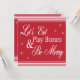 Este convite inspirado pelo Bunco, ilustrado com vermelho e branco divertido, é certamente um sucesso para o seu grupo Bunco. A frente diz "Comer Vamos, Jogar Bunco e Ser Feliz. A parte traseira apresenta dados de bunco. O texto no verso pode ser alterado para ajustado do evento.