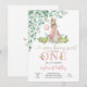 Celebrate your little ones special day with this whimsical bunny first birthday invitation. Featuring a sweet watercolor bunny in a floral crown holding a pink balloon, this pastel design is perfect for a girls birthday party. The charming woodland theme with soft greenery and flowers creates a magical, fairy-tale atmosphere guests will adore. Personalize easily with your childs name, party details, and RSVP information to make it uniquely yours. A delightful choice for spring, summer, or garden-themed celebrations.