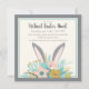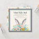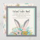 Travesseiro bonito com orelhas de coelho aparecendo de flores de primavera. Convite virtual.