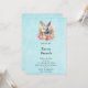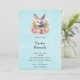 An Easter brunch invitation with a watercolor image. A white gray bunny rabbit surrounded by a garland of pink and peach roses. For bunny lovers and Easter themes and birthdays and showers.