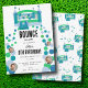Um tema de festa de aniversário de bola de castelo saltando. Um aniversário de criança de convite de design de meninos azuis e verdes personalizado perfeito para um tema de festa de aniversário de bola de salto. Personalize este convite de aniversário do " Bouncy on over" com seu próprio texto, foto e faça dele seu próprio! Ideal para o aniversário de crianças!
