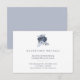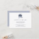 Este cartão de detalhes de recepção de casamento elegante e simples apresenta flores e folhas ricas e profundas em azul poeira. Usamos arte via LABFcreations.