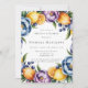 Adicione um toque fresco e romântico à sua papelaria de casamento com esta vibrante design floral de citros de aquarela. Apresentando limões pintados à mão, laranjas, mirtilos e flores florescentes de jardim em tons ricos de roxo, rosa e azul, este buquê elegante é perfeito para casamentos de primavera ou verão. Ideal para convites, cartas de agradecimento, cartazes ou presentes de casamento personalizados. Uma charmosa mistura de frutas e flores traz um talento caprichoso e inspirado no Mediterrâneo a qualquer celebração.