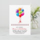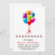Um convite de aniversário divertido com um grupo colorido de balões amarrados com um arco vermelho e separados do texto por uma fileira de ícones de flor. Adequado para todas as idades.