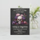 Convites de Casamento Gótico Escuro e Moody com Rembrandt inspiraram roxo, rosa e rosas vermelhas. Apresenta um crânio rodeado por um buquê floral sobre um fundo preto ligeiramente esticado. O dorso é um corvo voador com um pequeno buquê de rosa. Perfeito para o Dia das Bruxas, dia dos mortos, "a morte nos parte", noite sob as estrelas, cósmica, horóscopo, gótico ou noite mágica mística para qualquer celebração. Todos os textos podem ser alterados. Para fazer mais mudanças, vá para Personalizar este modelo. Na parte inferior você verá "Quer personalizar este design ainda mais? Clique em EDIT usando a ferramenta Design. A partir daí você pode mudar algumas fontes e algumas cores, mover coisas ou excluir o que você precisa. Um pequeno conteúdo de geração de meia-jornada combinado com elementos desenhados à mão.