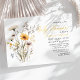 Convide os convidados para celebrar uma ocasião especial com nosso convite de Baby Shower Boho com Buquê de Flores Silvestres Amarelas. Este convite apresenta um arranjo delicado de flores silvestres amarelas e brancas, oferecendo uma estética suave e acolhedora. Inclui detalhes essenciais do evento, como data, hora e local, todos emoldurados com toques florais. Perfeito para definir um tom alegre, este convite é ideal para um baby shower com tema boêmio, prometendo uma reunião elegante e memorável.