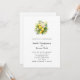 Convite de casamento com uma adorável ilustração de um buquê de limões rodeado por folhas de flores brancas e raminhos.