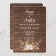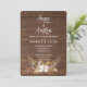 Corda de luzes em buquê floral de galhada de veado em madeira marrom rústica para um convite de casamento de outono.