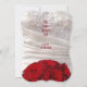 Um vestido de casamento tema damasco branco elegante chic, com um buquê vermelho de rosa floral, com texto vermelho rubi. Esta bonito design feminina romântica se adaptaria aos casamentos no inverno e casamentos brancos tradicionais ou modernos. Obtenha um visual chic e sofisticado e coordenado para seu papel de carta essencial para o dia do casamento visitando a Loja Personalizada_Casamentos.