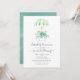 Ranunculus cerâmico, tremoços, peonias e suculentos buquê de paraquedas primeiro convite de comunhão sagrado em tons pastéis com elegante tipografia de escrita manual.