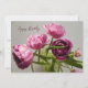 Buquê de tulipas. Tulipas rosa e roxa. Feliz aniversário