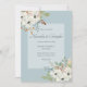 Este design foi criado usando elementos de minhas pinturas originais de aquarela combinadas para criar um buquê de queda de rosa poeirento, folhagem verde-sábio, conjunto azul poeirento atrás de florais brancos.
