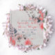 Belo design de convite personalizado para casamento, com buquê floral de cor d'água em tons de rosa, bege, verde escuro e creme em um fundo texturizado de papel antigo. O texto é totalmente personalizável.
