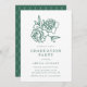Convites de festa de formatura elegantes com um buquê de arte verde em linha floral com fundo branco. Personalize os convites de festa de formatura botânica com o nome do formando e os detalhes da parte.