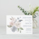 O design de casamento do pastel floral de enfumaçados elegante apresenta cores aquáticas modernas e sofisticadas, pintadas à mão, rosa e flores de hydrangea em tons suaves de azul enfumaçado, esbranquiçado, amarelo-marigold mutado e rosa-pincel embelezado por sotaques verdes de louros botânicos. Este esquema maravilhoso apresenta os seus detalhes num script clássico moderno e limpo. Para outras cores ou produtos correspondentes, visite a loja justFharryn Zazzle ou entre em contato com o designer, c/o Fharryn@yahoo.com Todos os direitos reservados. #bohochic #zazzlemade