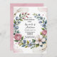 Uma ilustração de arranjo floral romântico e elegante, perfeita para temas de casamento. Este design apresenta rosas cor-de-rosa suaves, magnólias delicadas e flores pastéis azuis rodeadas por folhagens exuberantes e sutil realce dourado. Ideal para convites de casamento, cartões de save-the-date, sinalização ou decoração, esta obra de arte adiciona um toque de beleza atemporal e charme a qualquer celebração.