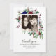 Cartões de agradecimentos de fotografia floral com cor d'água, com rosas de marsala vermelho, burgundy, azul marinho e flores cor-de-rosa pinceladas. Para itens correspondentes e edições personalizadas, contacte o Designer LeahG