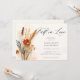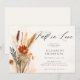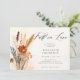Um belo buquê de flores secas, flores silvestres, verde e grama-palha, pintado em delicada e romântica aquarela, com tons de marrom-terra, bege e laranja, cria um elegante quadro floral para esse chá de panela de outono com uma queda no tema do amor, que também apresenta caligrafia moderna. A design é uma mistura eterno de sofisticação clássica e o charme lúdico das flores, perfeito para o romântico moderno. Ideal para um noivado de outono, este convite combina tanto com a elegante noiva e noiva boêmica e com aqueles que planejavam uma festa de jardim, uma celebração de quintal ou um evento formal nos jardins de um château. Uma bela escolha para as noivas que procuram um toque do capricho da natureza com elegância refinada.