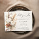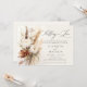 Um belo buquê de flores secas, peônias, folhagem seca e grama-palha, pintada em delicada e romântica aquarela, com tons de marrom-terra, bege e branco, cria um elegante quadro floral para este convite à festa de noivado de casal de outono com uma queda no tema do amor, que também apresenta caligrafia moderna. A design é uma mistura eterno de sofisticação clássica e o charme lúdico das flores, perfeito para o romântico moderno. Ideal para um noivado de outono, este convite combina tanto com a elegante noiva e noiva boêmica e com aqueles que planejavam uma festa de jardim, uma celebração de quintal ou um evento formal nos jardins de um château. Uma bela escolha para as noivas que procuram um toque do capricho da natureza com elegância refinada.