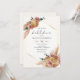 Chá de panela de boho com erva-pampas e buquês florais secos. Personalize com suas informações para que a noiva seja.
