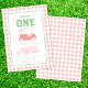 Tema do primeiro aniversário de golfe "Buraco em um" com carrinho de golfe e padrão de xadrez rosa-de-coleira macio.