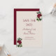 Este é um elegante creme e floral de vinho burgandy Salve o convite de casamento da Data com a linda burgandia de aquarela e flores de creme de aquarela com folhas verdes escura de esmeraldas da floresta. Esta design é perfeita para uma festa de outono ou de jardim.