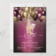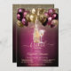 Um convite moderno, chico e glamouroso com um vinho elegante, garrafa e balões.